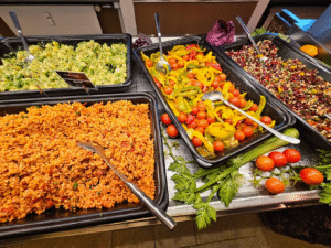 Bagefter kører vi med bussen til restaurant Riz Raz i Store Kannikestræde hvor vi får serveret en meget lækker middelhavsbuffet.